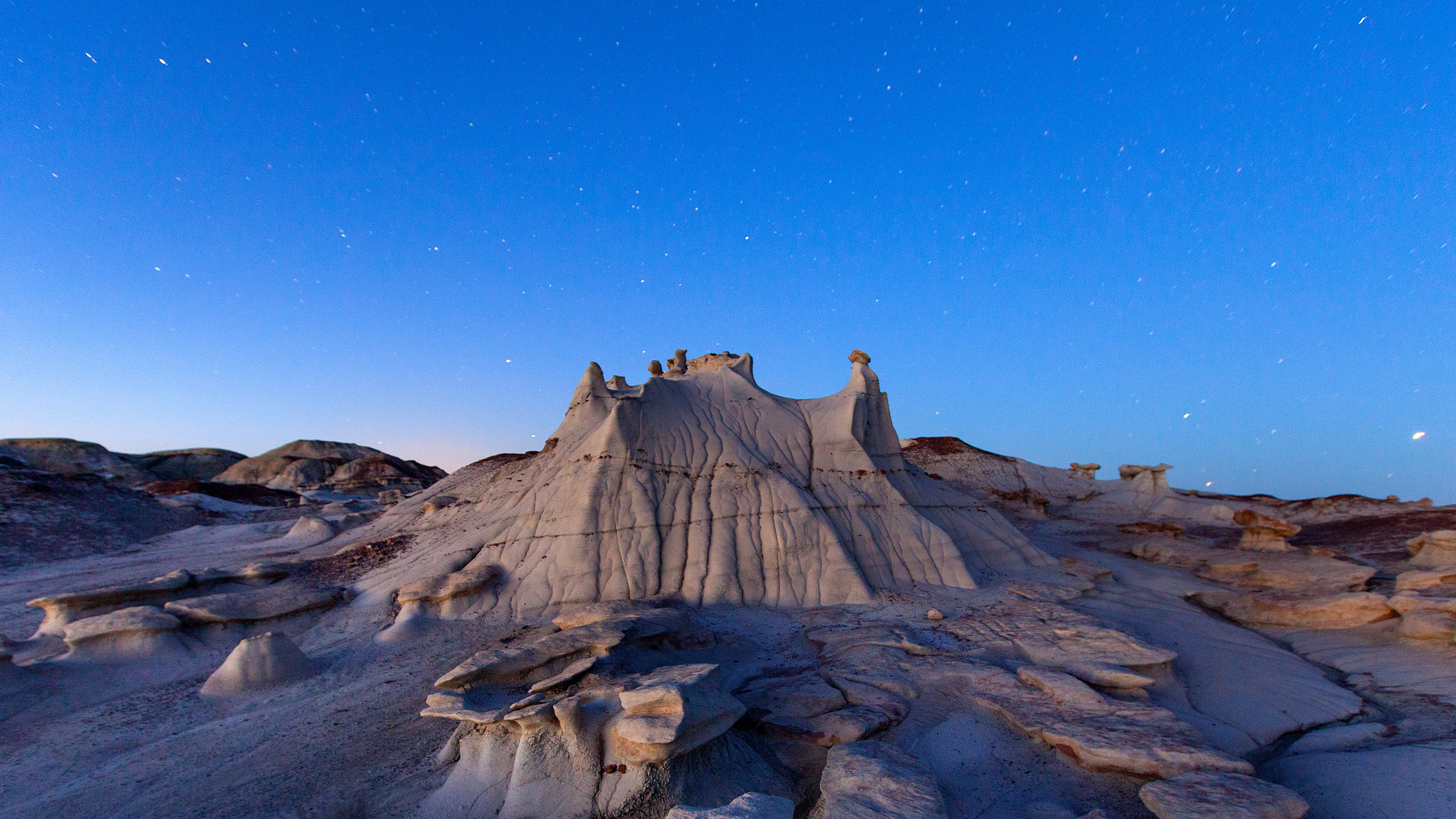 Time is the great transformer, changing the world and all of us. For instance, this New Mexico badland—the Bisti/De-Na-Zin Wilderness—was once a lush, tropical forest. Nearly 70 million years ago, instead of twisted terrains and towering spires, this place was home to an array of Late Cretaceous dinosaurs, including armoured ankylosaurs, duck-billed hadrosaurs and mighty Tyrannosaurs. Today, the area is filled with wonders of a different kind, rock formations that look more like sculptures than natural phenomena. Bisti/De-Na-Zin is named after Navajo words: Bisti means "among the adobe formations" and De-Na-Zin comes from nearby rock carvings of a "standing crane." Visitors to the Four Corners region shouldn"t miss out on this otherworldly landscape of shale and sandstone.