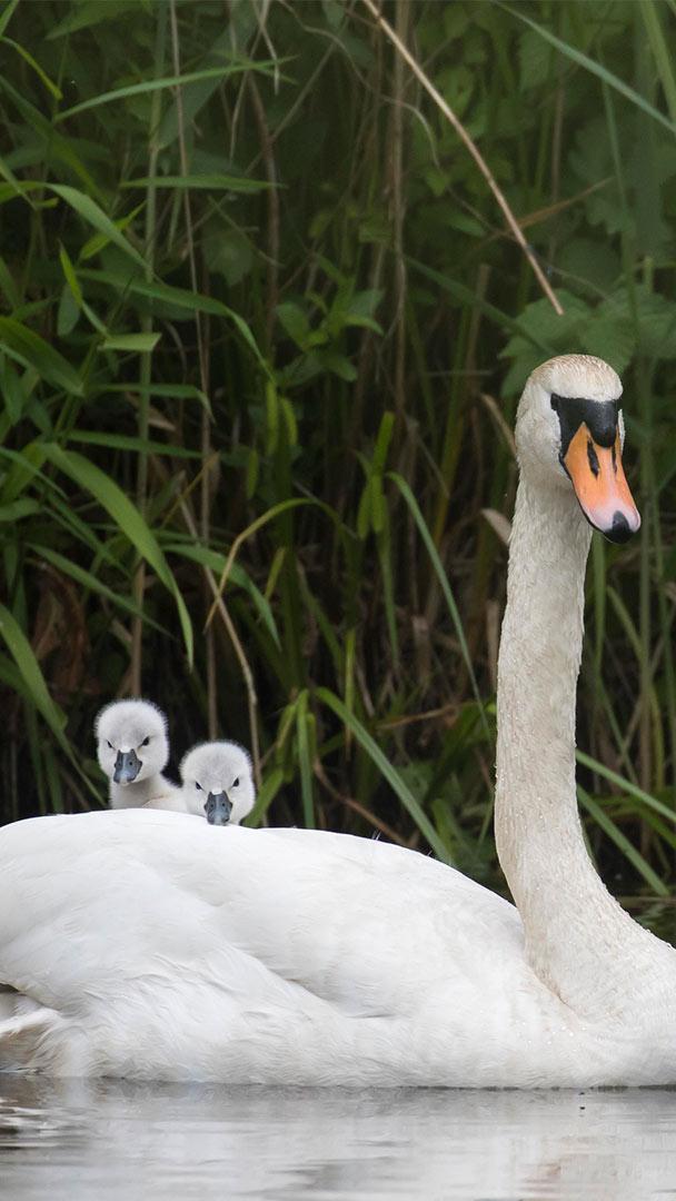 Silence on the water often means something special is happening—have you noticed how swans seem to turn lakes into slow-moving classrooms? A mute swan glides across calm water with its cygnets in Hesse, Germany. This scene is common across European lakes and river landscapes, from Lake Constance and the Mecklenburg Lake District to restored river channels in many towns and cities. These waterways provide sheltered shorelines and abundant aquatic plants, the swan"s primary food source.