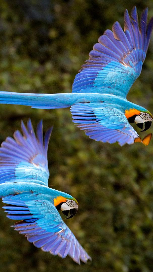 Um vôo colorido no céu do Pantanal! Arara-canindé voando na floresta do Pantanal, Brasil (© Ondrej Prosicky/Shutterstock)