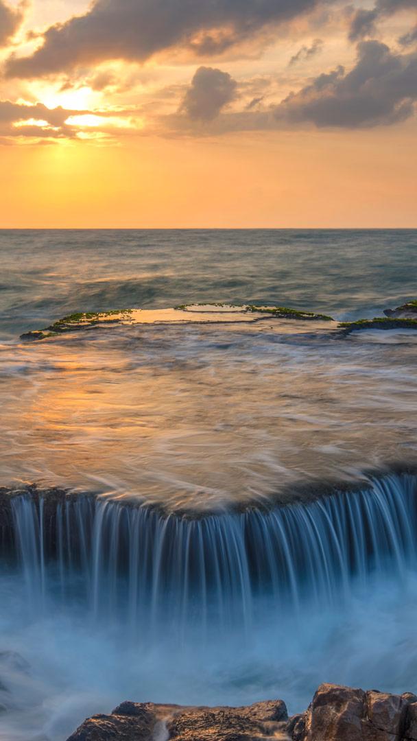 Uma dança da maré Cascata de água do mar sobre um antigo recife de coral, Hang Rai, Vietnã (© Thang Tat Nguyen/Getty Images)