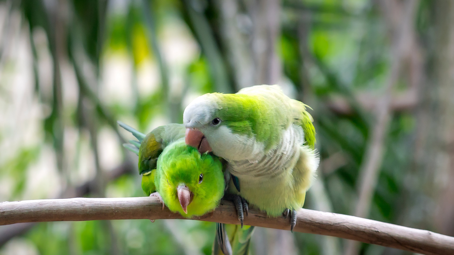 Eu sei que vou te amaaaaar Periquito-monge e do periquito-da-planície cuidando um do outro (© diegograndi/Getty Images)