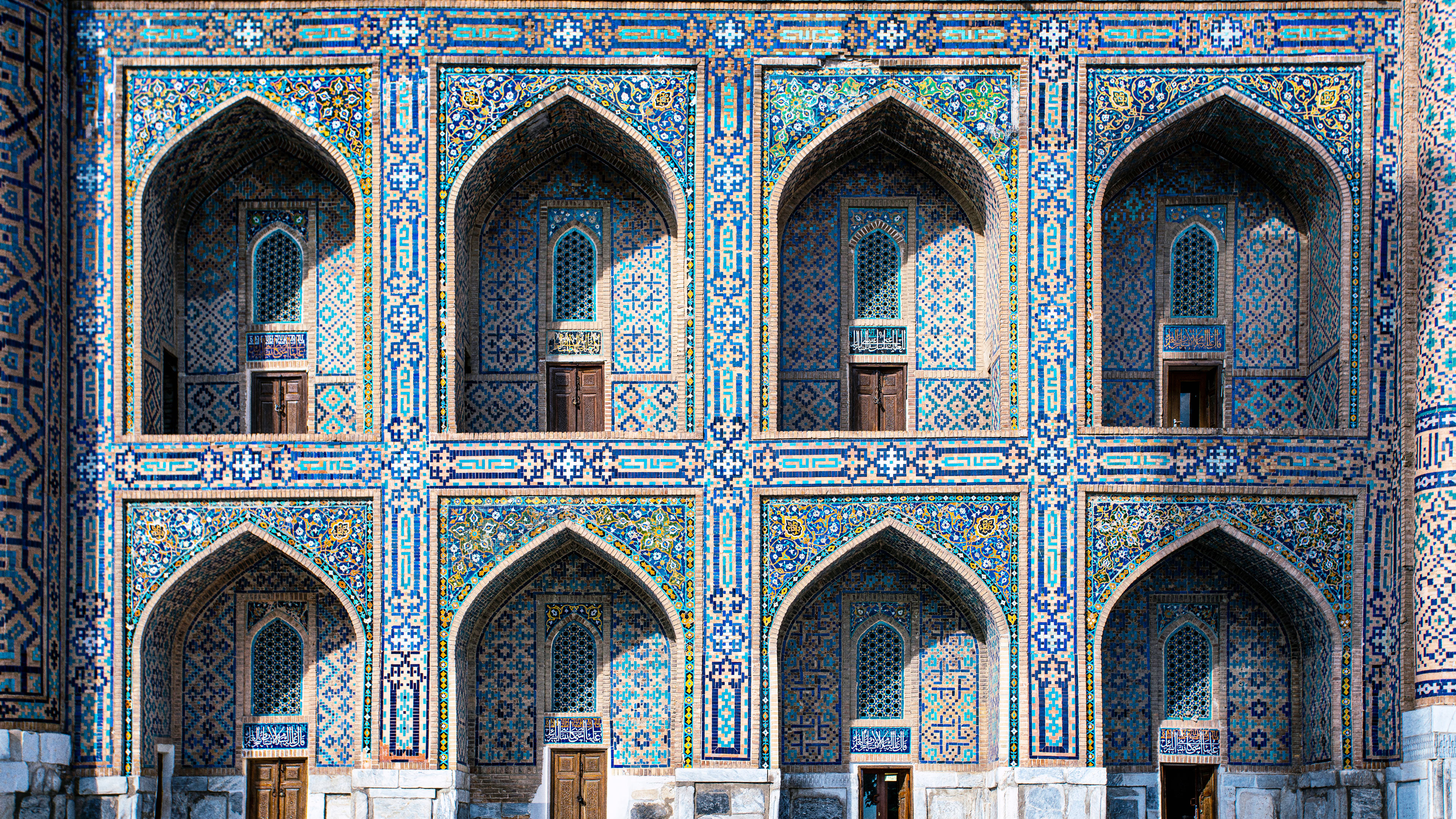 Contos de azulejos Fachada de mosaico na Praça Registan, Samarcanda, Uzbequistão (© da-kuk/Getty Images)