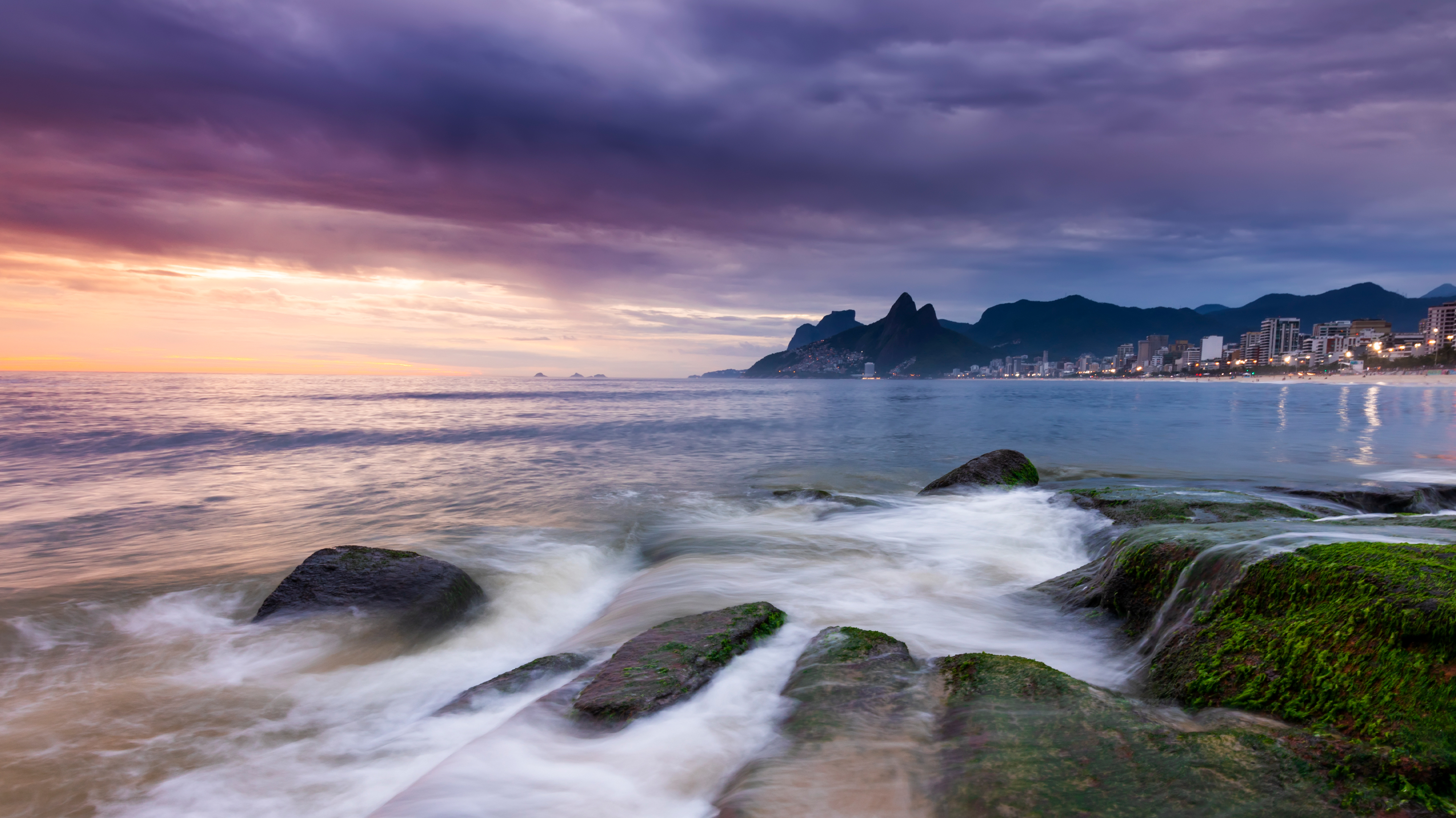 O inverno começou Pôr do sol na praia de Ipanema, Rio de Janeiro, Brasil. Vista para as praias de Ipanema e Leblon, Morro Dois Irmãos e Pedra da Gávea (© Anton Petrus/Getty Images)