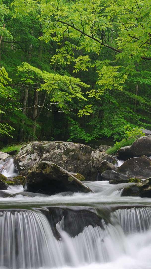 Fluindo pelas Montanhas Fumegantes Rio Little Pigeon, Parque Nacional das Grandes Montanhas Fumegantes, Tennessee, EUA (© GreenStock/Getty Images)