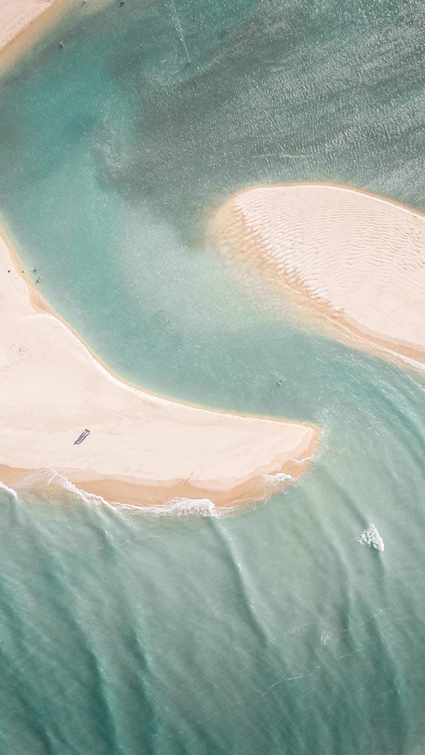 Um desenho feito de vento e tempo Vista aérea de praia em Jericoacoara, no Ceará (© AmazingAerialAgency/Adobe Stock)