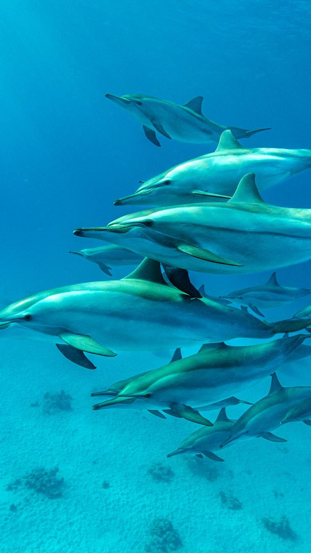 Cada mergulho é um splash! Grupo de golfinhos-rotadores no Mar Vermelho, Marsa Alam, Egito (© Franco Banfi/Nature Picture Library)