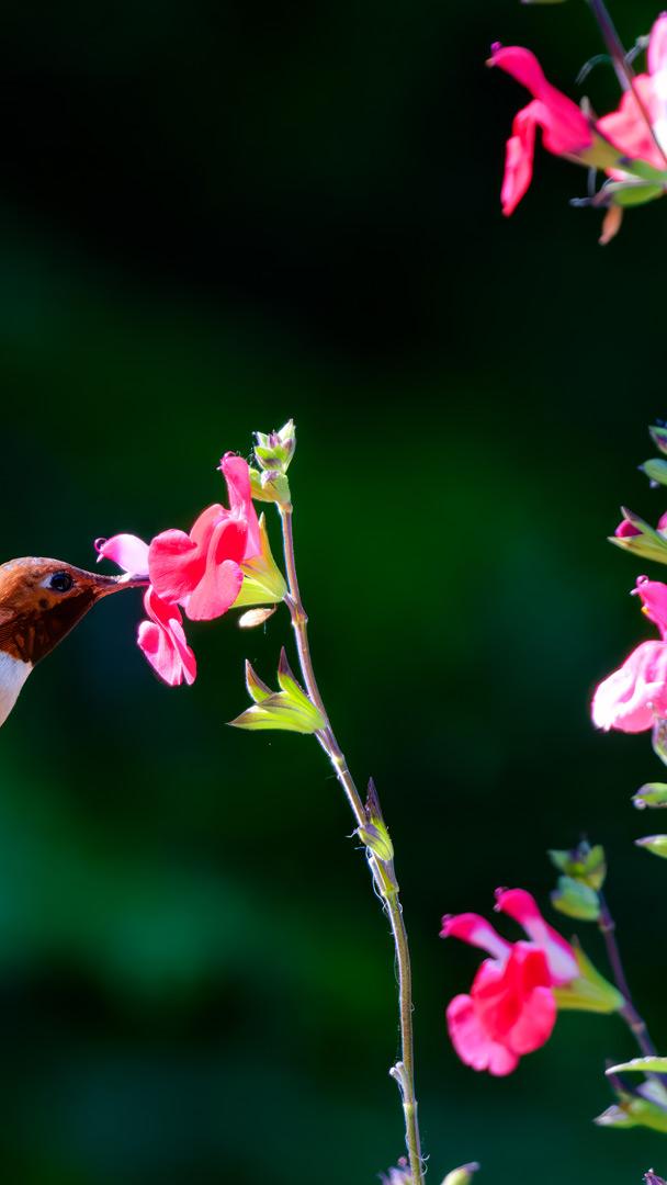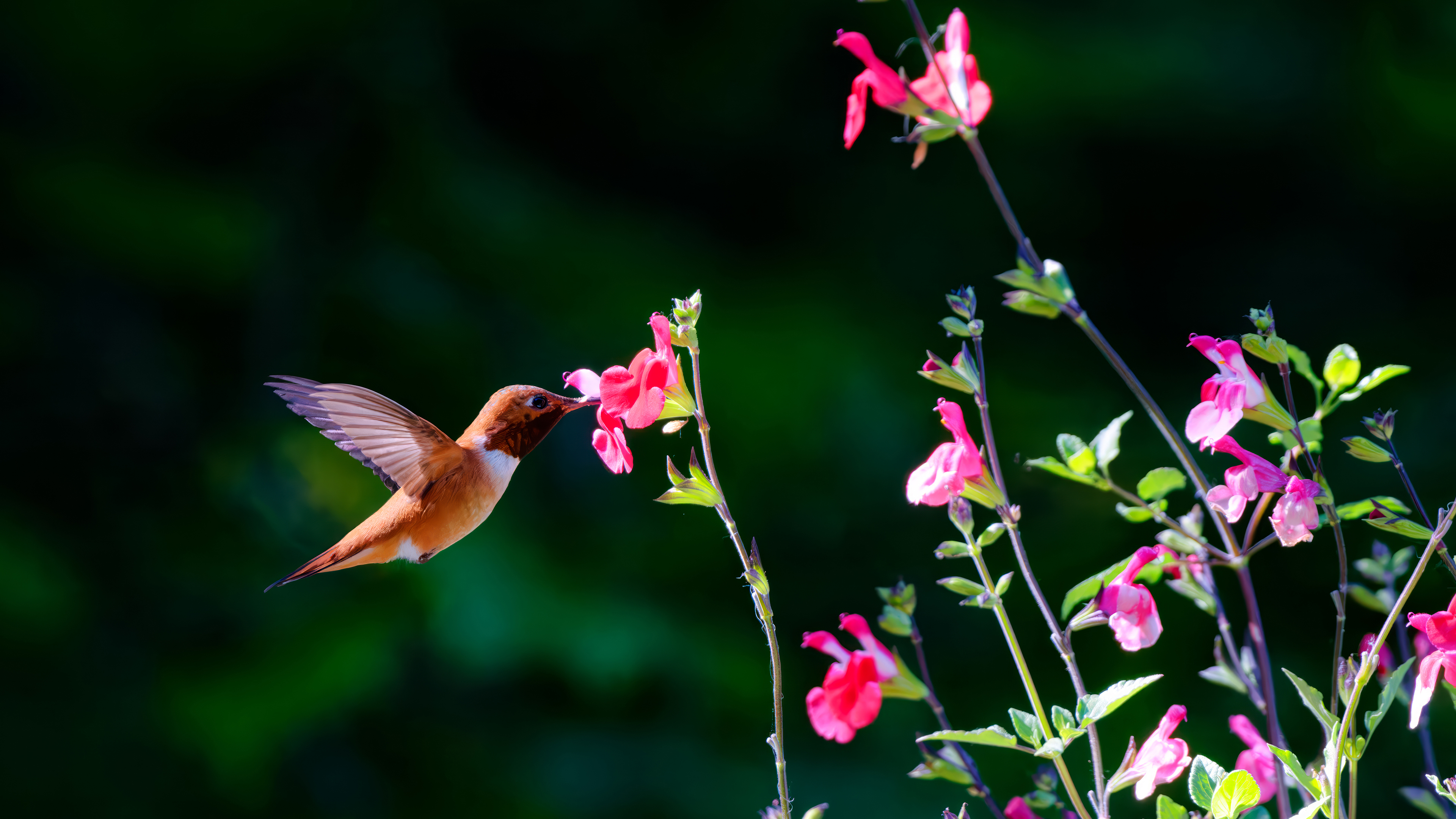 Blink, and you miss them. Rufous hummingbirds don"t just fly—they dart, hover and zip through gardens like tiny, feathered rockets. They migrate thousands of kilometres from Mexico to the Pacific Northwest, making one of the longest migratory journeys relative to body size. The males arrive first, flashing their signature coppery-orange feathers to claim territory. They perform dramatic aerial dives to impress potential mates, reaching speeds of nearly 80 kilometres per hour. With wings beating up to 42 to 62 times per second based on gender, they burn energy fast, making frequent pit stops at flowers and feeders to fuel up. Once the display is over, the female gets to work, building a soft, camouflaged nest in trees or shrubs, where she raises the tiny chicks on her own.