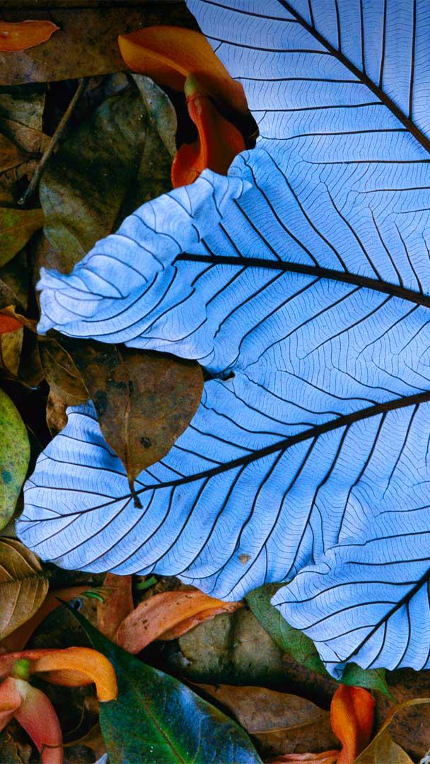 Unbe-leaf-able Cecropia leaf atop lobster claw petals, Mexico (© Gerry Ellis/Minden Pictures)