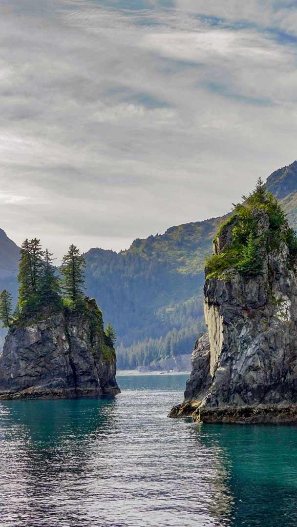 崎岖山峰与野性水域 阿拉斯加基奈峡湾国家公园尖顶湾, 阿拉斯加州苏厄德, 美国 (© Wander Photography/Getty Images)