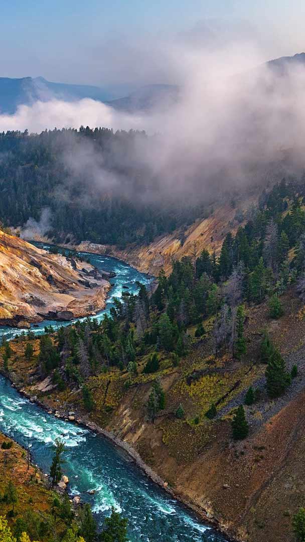 从火山之源到河流之路 方解石温泉区和黄石河,黄石国家公园,怀俄明州,美国 (© Rebecca L. Latson/Getty Images)