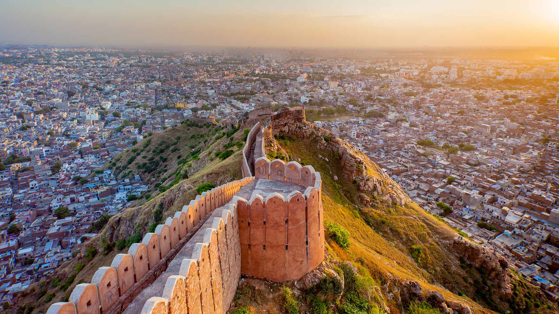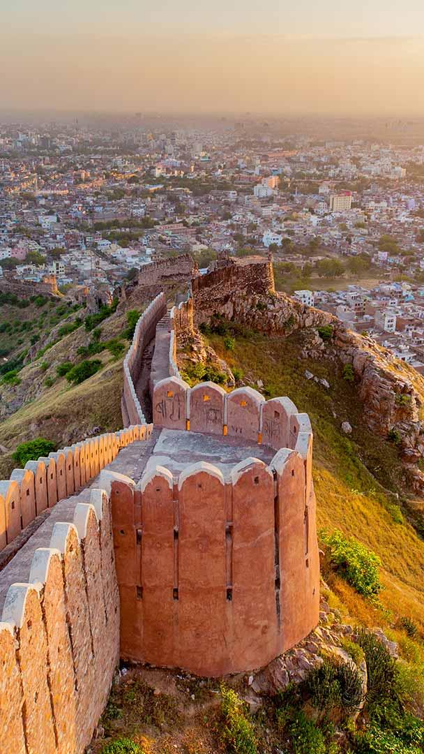 宏伟的堡垒和宫殿 从纳哈加尔城堡鸟瞰斋浦尔,印度 (© Sean3810/iStock/Getty Images Plus)