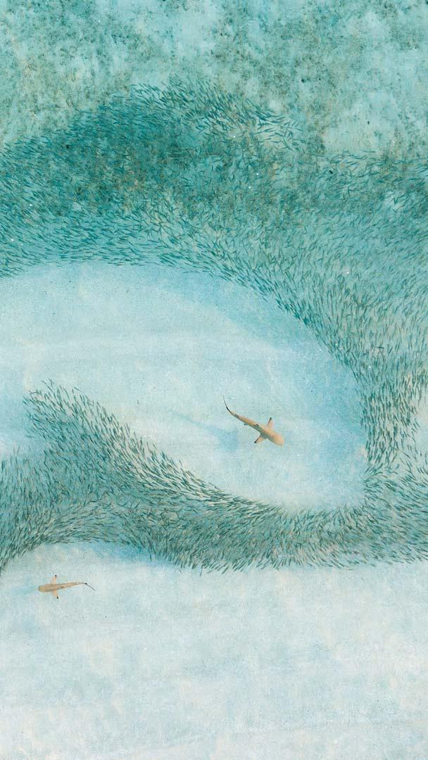 一群鲨鱼正在狩猎 乌翅真鲨,马尔代夫 (© Filippo Bacci/Getty Images)