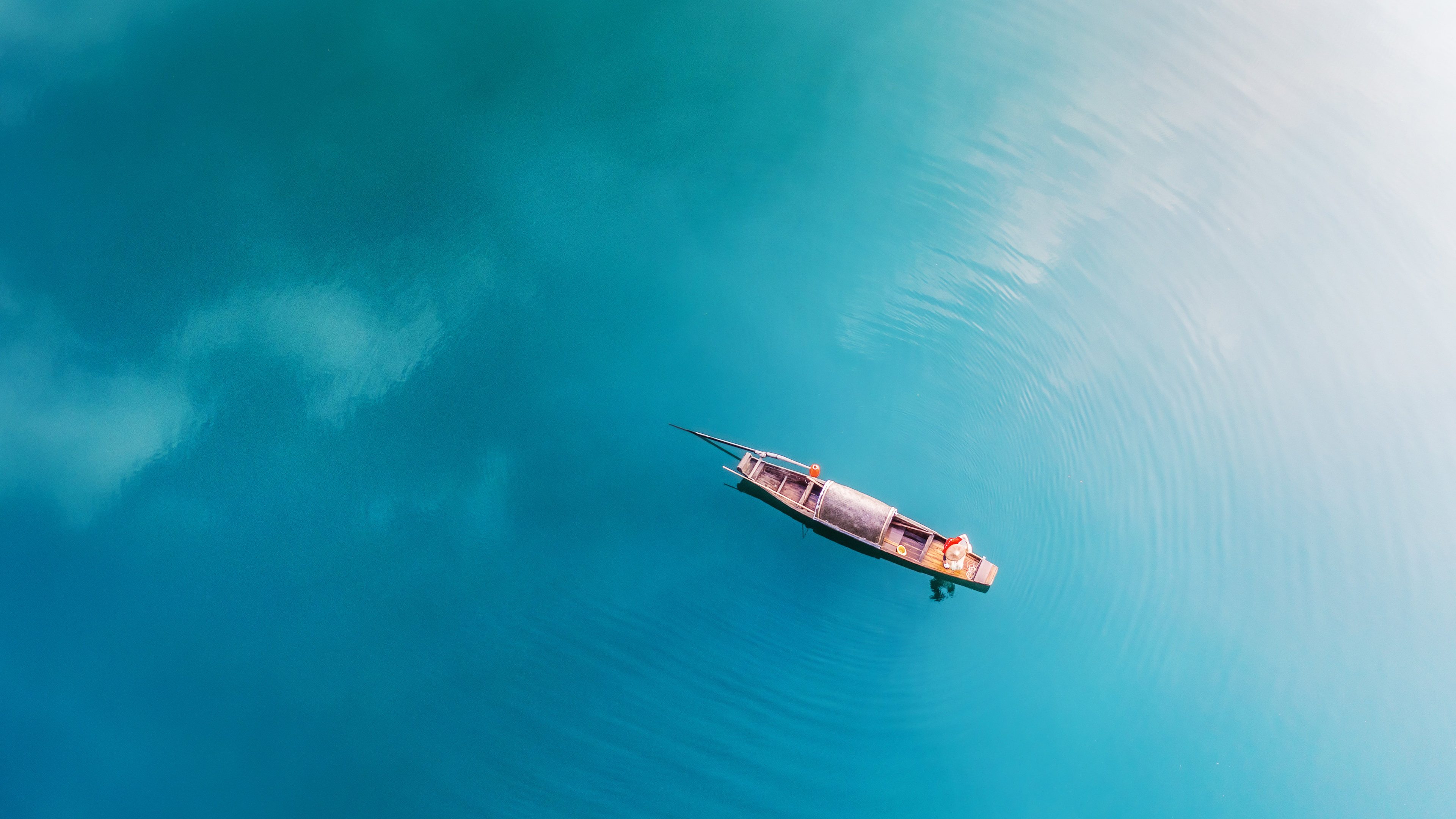 清凉的湖水 蓝色水面上的渔船航拍图,郴州市,湖南省,中国 (© Haitong Yu/Getty images)