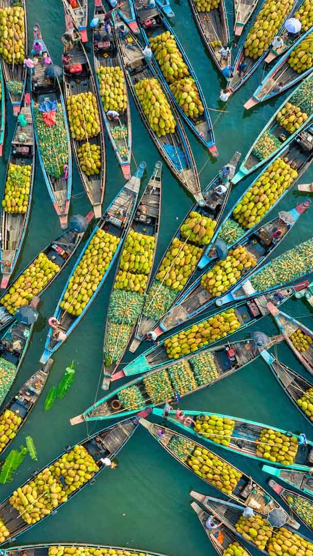 Schwimmender Markt, Karnaphuli-Stausee, Bangladesch © Azim Khan Ronnie/Amazing Aerial Agency