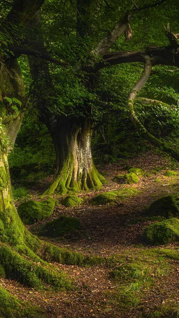 Willkommen in der Märchenlandschaft des Glenariff Forest Parks in der Grafschaft Antrim, Nordirland. Der Park erstreckt sich über fast 1.200 Hektar Waldland voller Wasserfälle und Wunder und bietet viele Wanderwege, von denen jeder einen einzigartigen Blick auf die Landschaft ermöglicht. Der beliebteste Pfad ist der 5 Kilometer lange Wasserfall-Wanderweg, der durch ein nationales Naturschutzgebiet führt und an den Wasserfällen Ess-na-Crub und Ess-na-Larach vorbeiführt. Glenariff besitzt eine reiche Tierwelt, darunter Rot-Eichhörnchen, Baummarder und Dachse. Vogelbeobachter werden von Weidenlaubsängern, Zilpzalpen und Eisvögeln begeistert sein. Auch die Flora ist beeindruckend mit Bäumen wie der uralten Buche auf unserem heutigen Bild, Eichen, Birken und Eberesche.