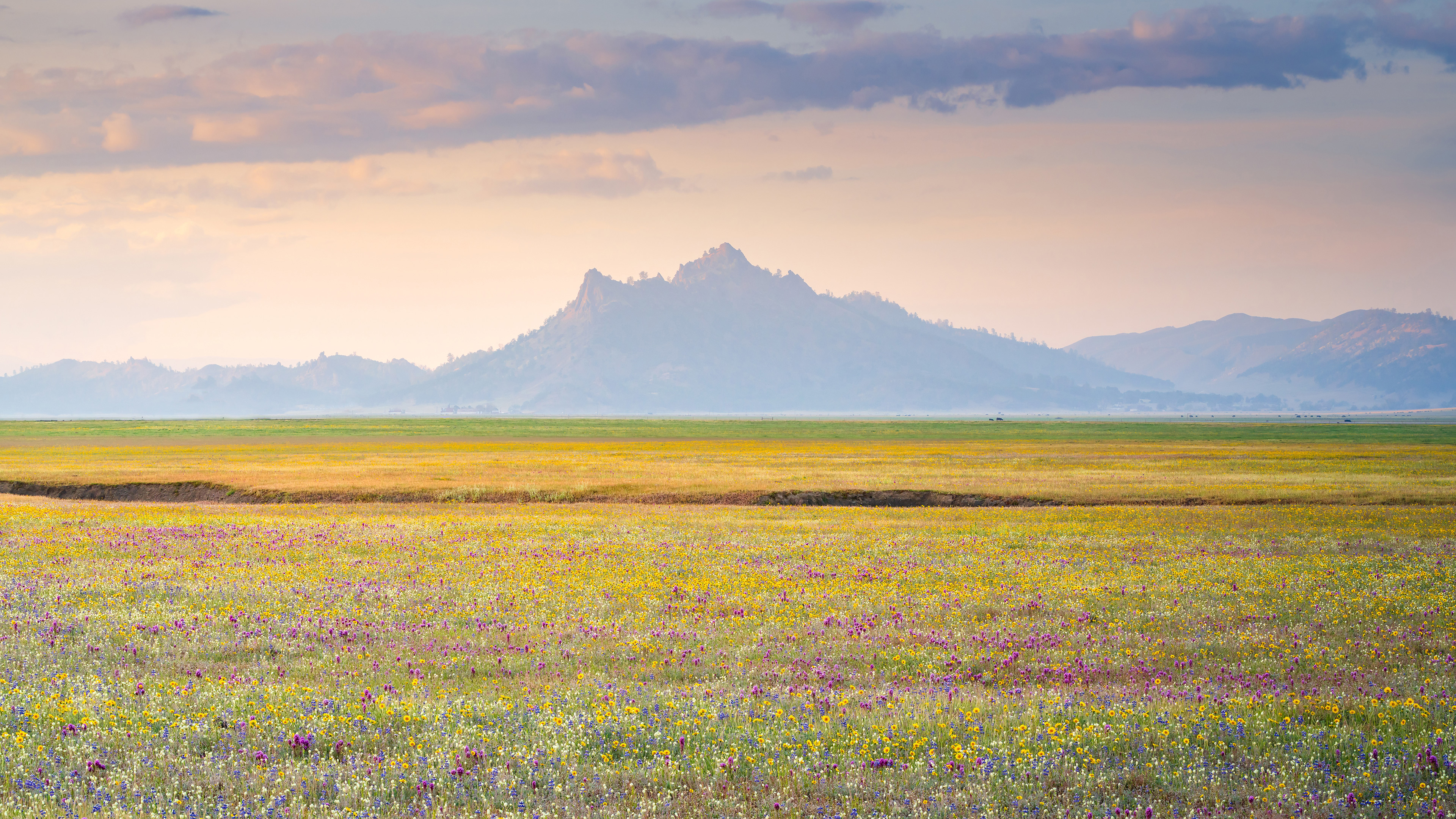 Mit dem Frühling erwacht im Kalifornischen Längstal (Central Valley) ein besonderes Naturschauspiel. Das über 700 Kilometer lange Tal, eines der wichtigsten landwirtschaftlichen Zentren der USA, zeigt im März und April eine ganz andere Seite. Dann beginnen unzählige heimische Wildblumen zu keimen, sobald Regen, Bodenfeuchte und Temperaturen günstig zusammenwirken. Viele dieser Arten gehören zum ursprünglichen Grasland, das einst große Teile des Tals prägte und heute nur noch in Schutzgebieten, auf ungenutzten Flächen oder als schmale Streifen zwischen Feldern erhalten ist. Ihre Samen können jahrzehntelang im Boden ruhen und geduldig auf den Moment warten, an dem die Bedingungen stimmen.