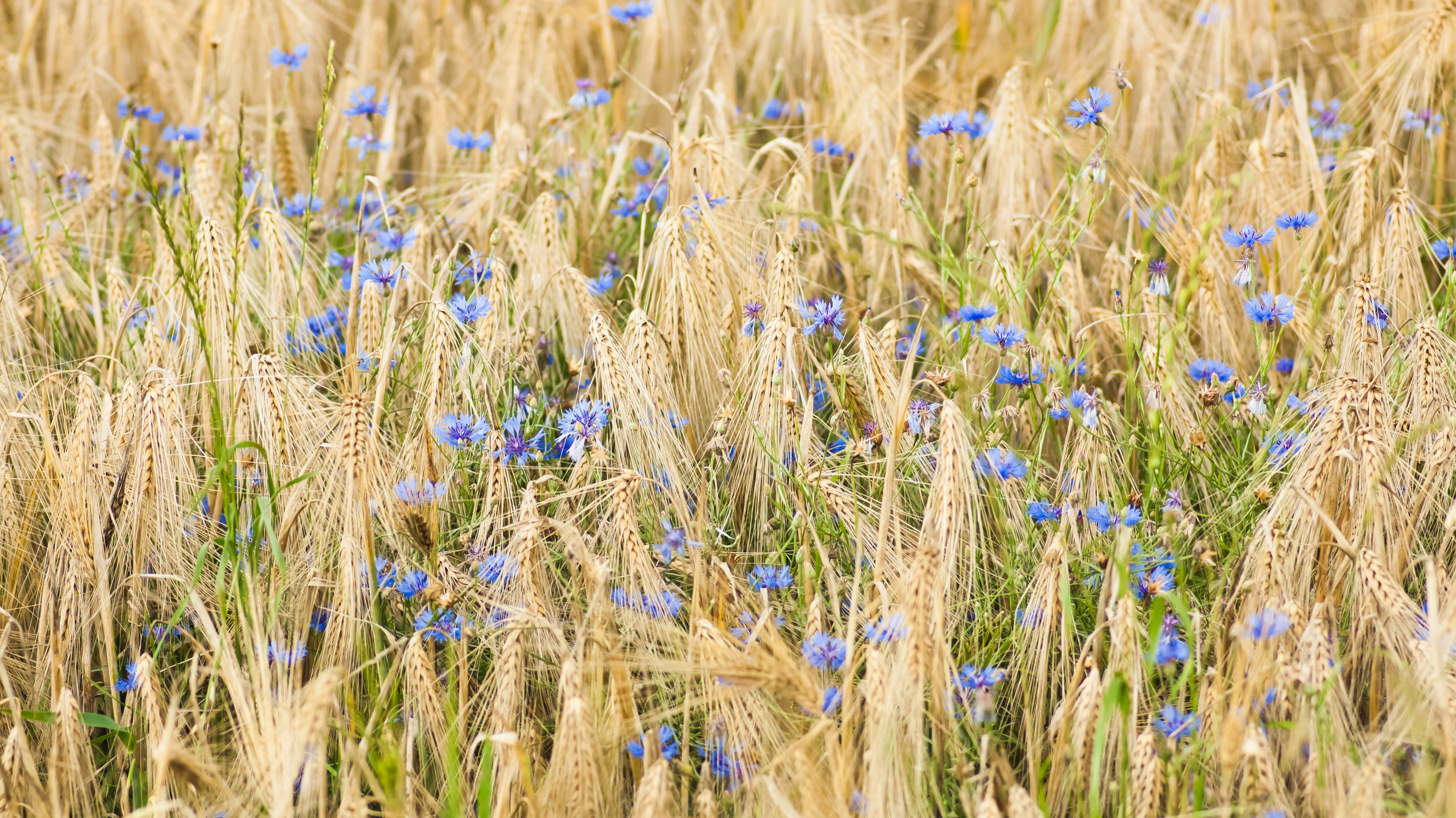 Ein Feld voller Blumen Nahaufnahme von Gerste und Kornblumen, Nordhausen (© Mandy Tabatt/EyeEm/Getty Images)