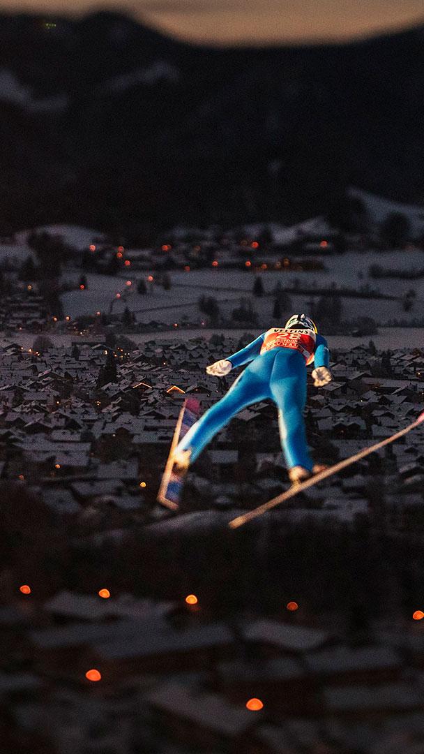 Völlig losgelöst Der finnische Skispringer Antti Aalto während seines Sprungs bei der Vierschanzentournee in Oberstdorf am 29. Dezember 2020, Bayern (© Adam Pretty/Getty Images)