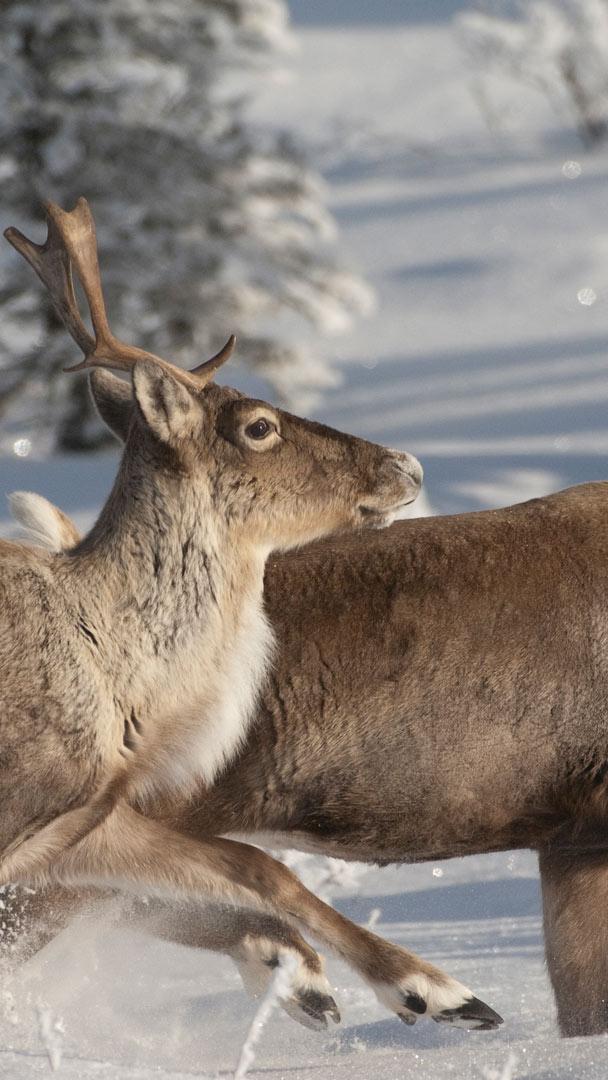 Wundern Sie sich nicht, wenn diese Rentiere in die Lüfte steigen! Seit Clement Clarke Moore in seinem Gedicht „A Visit from St. Nicholas” aus dem Jahr 1823 die Rentiere zu Helfern des Weihnachtsmanns ernannte, tragen Rentiere eifrig zum Weihnachtsfest bei. Es ist kein Wunder, dass der Weihnachtsmann sie ausgewählt hat. Dank ihrer widerstandsfähigen und anpassungsfähigen Eigenschaften, wie z. B. ihren zwei dichten Fellschichten oder ihren Augen, die an ein breites Spektrum von Lichtwellenlängen angepasst sind, sind diese Säugetiere an die unterschiedlichsten Umgebungen gewöhnt.
