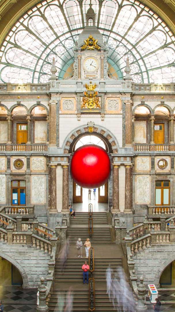 "El arte es la reina de todas las ciencias, comunica el conocimiento a todas las generaciones del mundo". Puede que no haya mejor día para reflexionar sobre estas inspiradoras palabras de Leonardo da Vinci que el Día Mundial del Arte. Se celebra el 15 de abril, fecha del nacimiento del célebre artista renacentista. Desde su emblemático cuadro de la Mona Lisa hasta sus detallados bocetos de máquinas voladoras, el legado de Leonardo amplía las fronteras del conocimiento y el talento en una gran variedad de campos. La imagen de hoy muestra el proyecto RedBall en la Estación Central de Amberes en Bélgica. Creada por el artista estadounidense Kurt Perschke, esta instalación itinerante de arte público está considerada como "la obra de arte callejero más longeva del mundo". Se trata de una bola roja hinchada de 4,5 metros que lleva desde 2001 encajada en decenas de monumentos de países como Australia o Inglaterra.