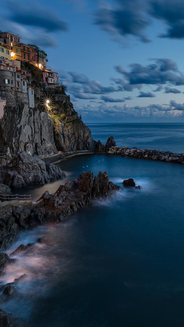 Conocida por sus casas de colores pastel que descienden hasta el mar Mediterráneo, Manarola, vista en la imagen de hoy, parece sacada de un cuento de hadas. Situada en los escarpados acantilados de la costa de Liguria, Italia, es uno de los cinco pueblos que conforman el Parque Nacional de Cinque Terre, declarado Patrimonio de la Humanidad por la UNESCO. El nombre "Manarola" podría derivar del latín "Magna rota", que en el dialecto local se convirtió en "Magna roea" (rueda grande), haciendo referencia a la gran rueda del molino histórico del pueblo.