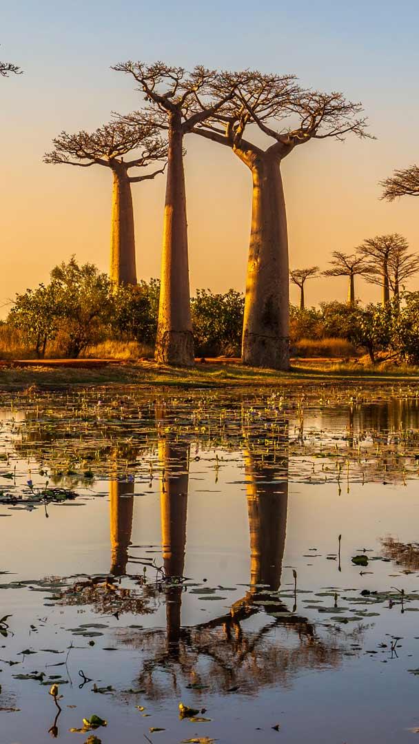 Sur l’île de Madagascar, l’allée des Baobabs se dresse comme une cathédrale végétale. Ces géants, appelés « mères de la forêt », sont des baobabs de Grandidier, endémiques de l’île. Certains ont plus de 800 ans et incarnent les derniers vestiges d’une forêt tropicale aujourd’hui disparue, balayée par la déforestation.