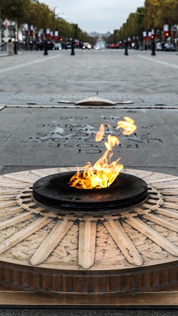 Sous l’Arc de triomphe, à l’extrémité des Champs-Élysées, la flamme éternelle vacille dans le vent d’automne. Chaque 11 novembre, son reflet danse sur la pierre froide de la tombe du soldat inconnu, rappelant la mémoire de ceux qui sont tombés pour notre pays. Autour, les drapeaux se dressent, les pas s’apaisent malgré le tumulte de la ville.