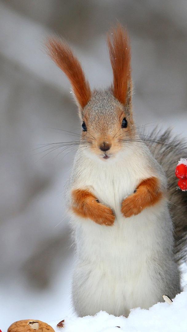 Dans la blancheur hivernale, surgit d’un bond un petit animal couleur caramel : l’écureuil roux d’Eurasie. Ses oreilles ornées de pinceaux soyeux et son pelage épais lui donnent une allure presque féerique. Agile et discret, il parcourt les forêts de feuillus et de conifères en sautant de branche en branche avec une précision étonnante. Son régime est varié : graines, noix, cônes de pin, baies et même les champignons. Avant l’arrivée du grand froid, il enfouit ses provisions dans de nombreux recoins et bâtit son nid douillet, appelé « drey » de son terme anglophone, au creux des arbres ou dans les fourches des branches.