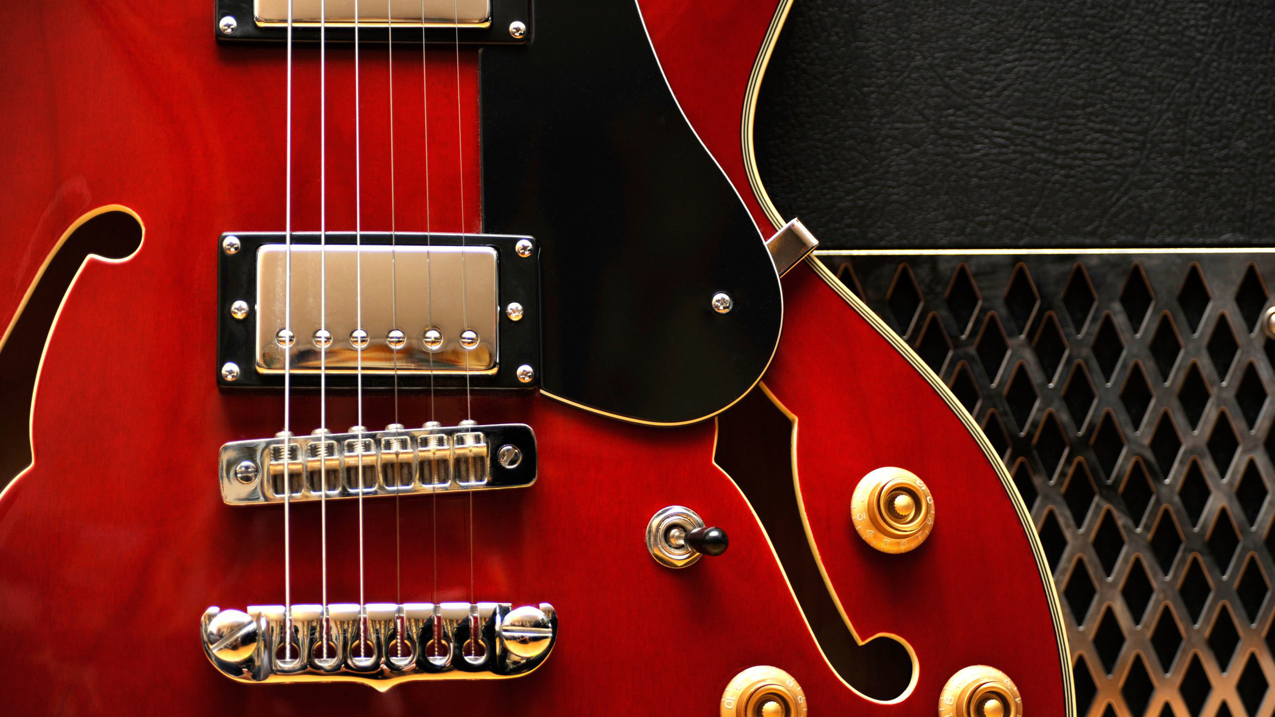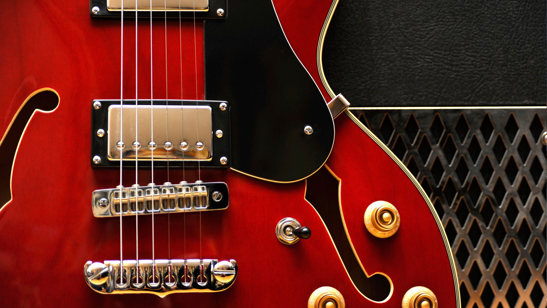 Gastronomie acoustique Guitare de jazz Aria de style Gibson 355 (© Claude thibault/Alamy)