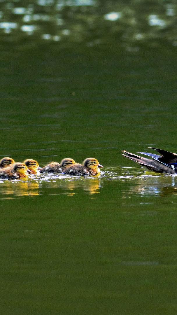 Pas de vilains ! Maman canard mandarin et ses petits en Corée du Sud (© VDCM image/Getty Images)