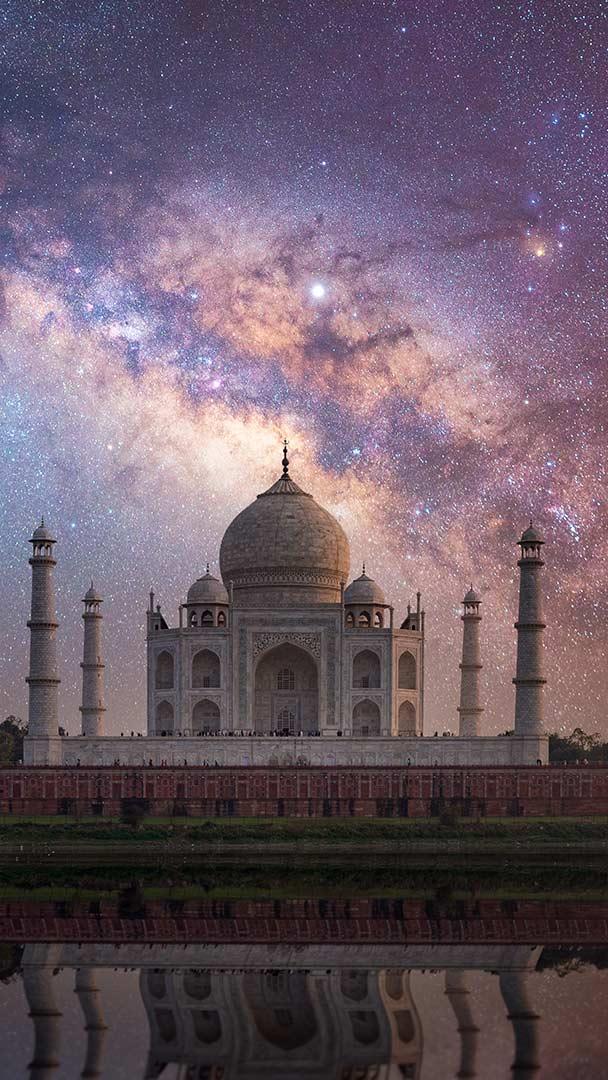The festival of breaking the fast Taj Mahal with Milky Way in the background in Agra, India (© Getty Images)