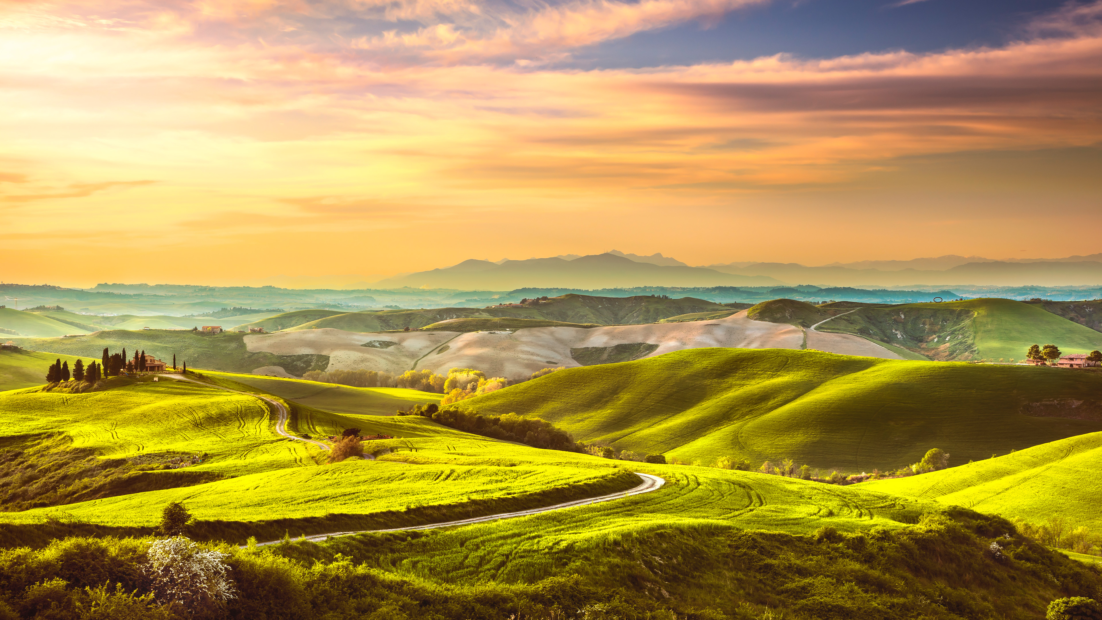Onde bucoliche Colline ondulate al tramonto, Toscana (© StevanZZ/Getty Images)