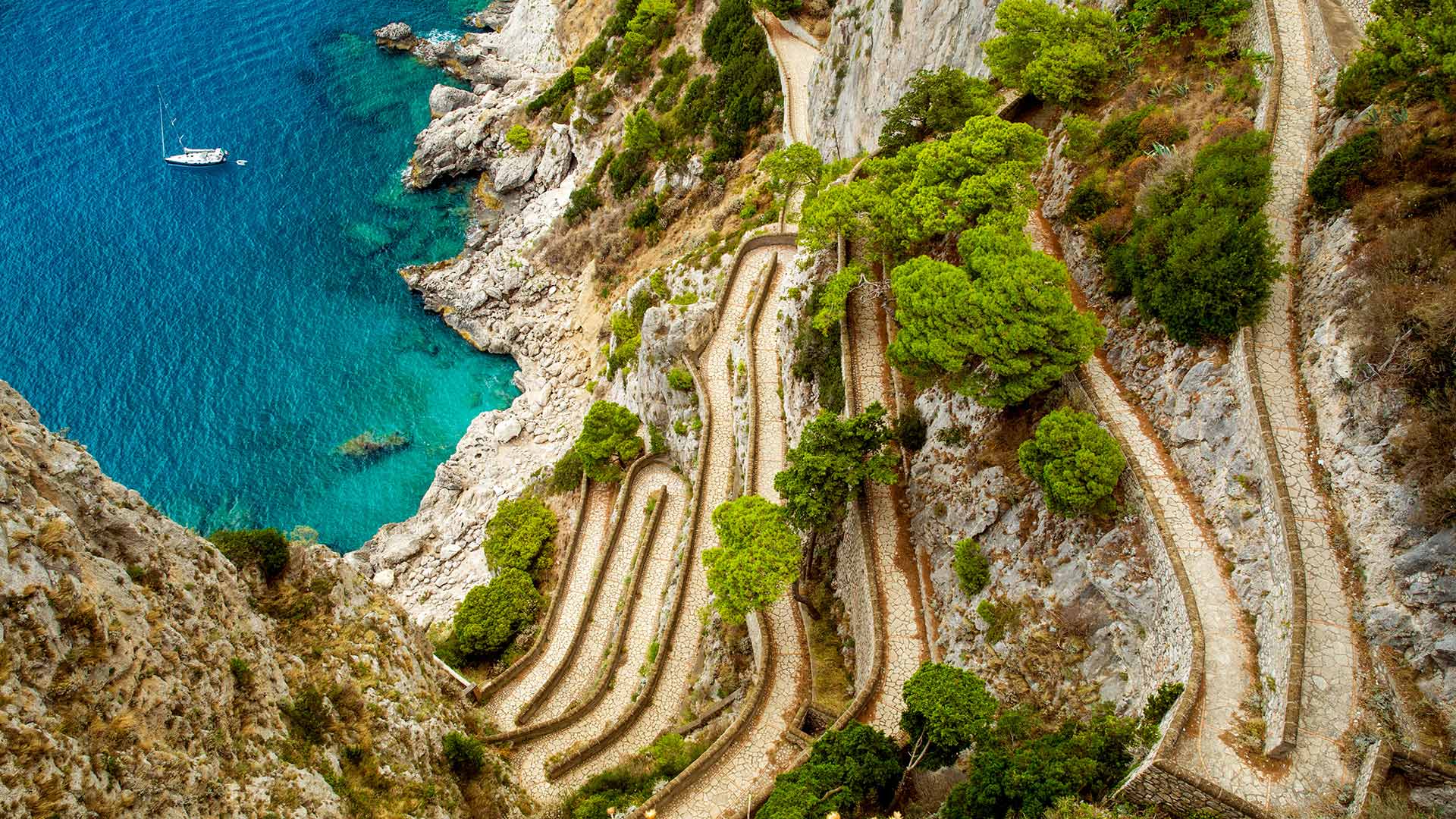 Una strada panoramica a picco sul mare Sentieri aggrovigliati di via Krupp, Capri (© Mikolajn/Getty Images)