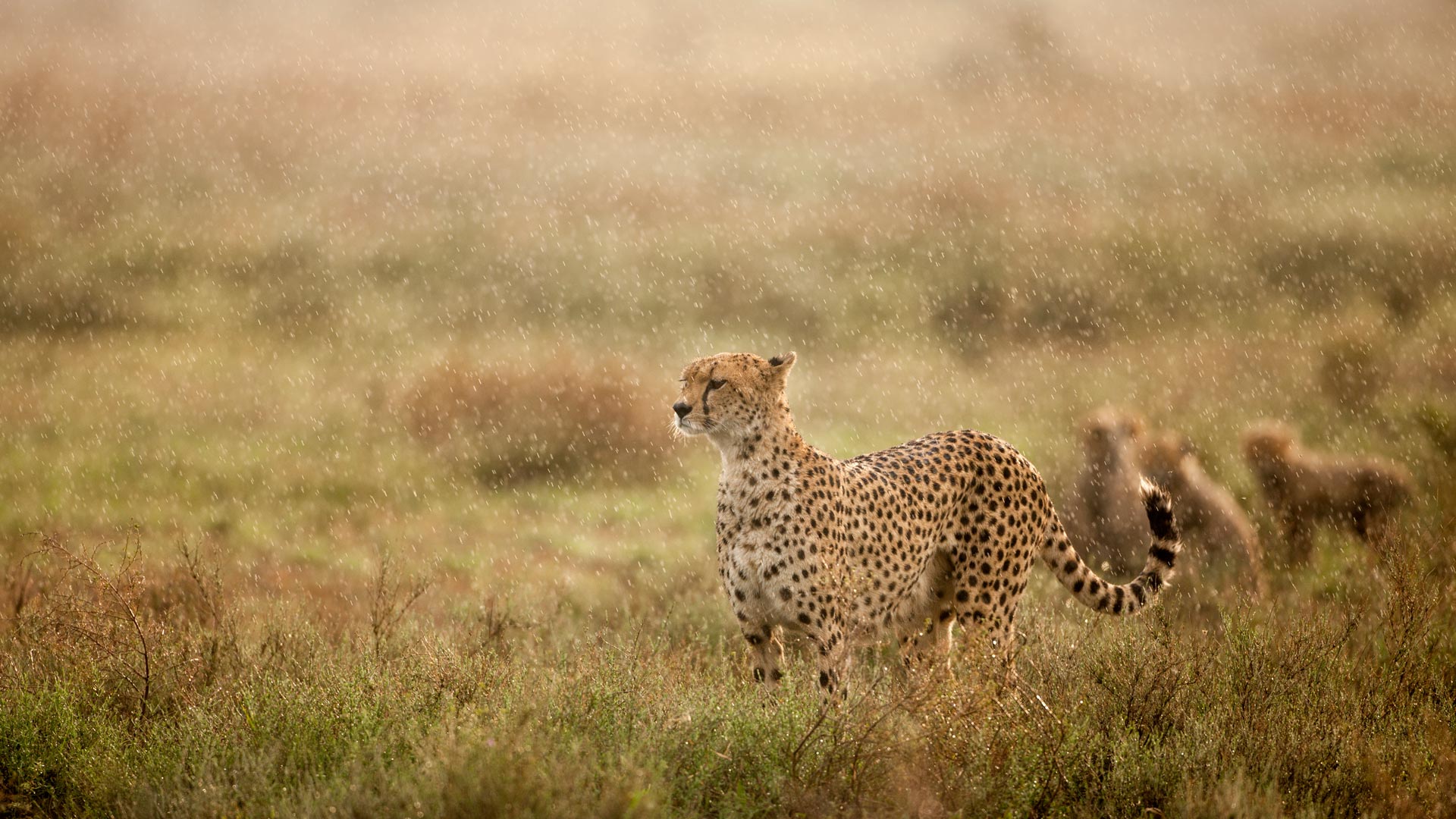 Velocità perfetta! Ghepardo sotto la pioggia del mattino, Ndutu Plains, Ngorongoro Conservation Area, Tanzania (© Paul Souders/Getty Images)