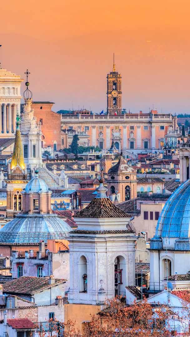 Luci, camera, azione! Vista su Piazza Venezia e il centro di Roma, Roma, Italia (© MasterLu/iStock/Getty Images Plus)