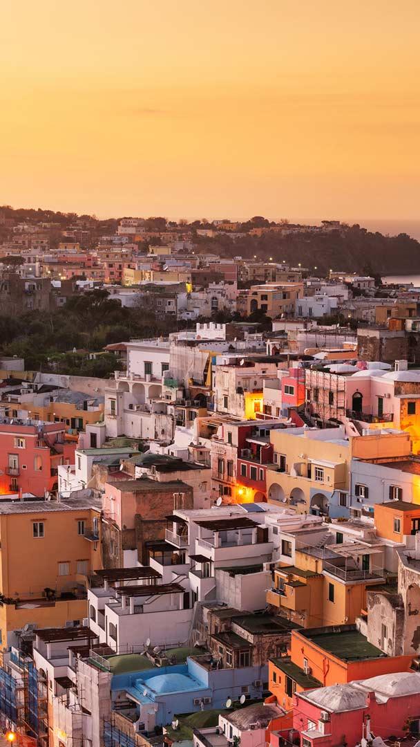 夕暮れ時のプローチダ島 プローチダ, イタリア カンパニア州 (© Sean Pavone/Shutterstock)