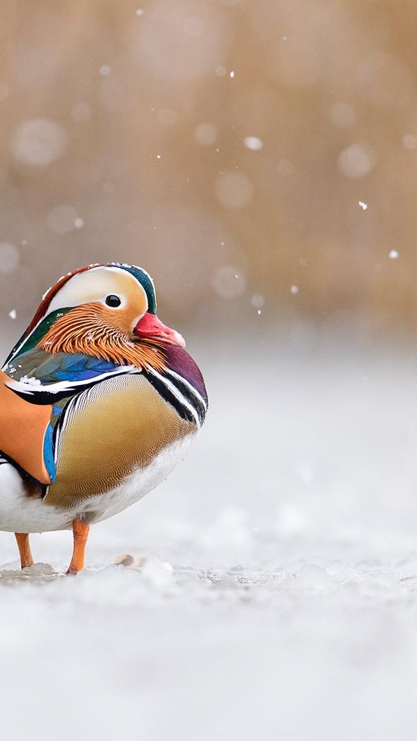 美しくて派手なオシドリ リッチモンドパーク, イギリス ロンドン (© Oscar Dewhurst/Minden Pictures)