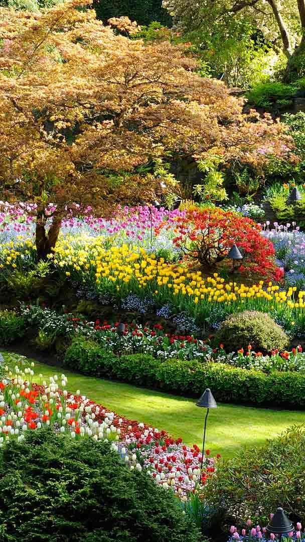 What began as an abandoned quarry over a century ago now transforms into a living colour wheel each spring. Butchart Gardens in Brentwood Bay, British Columbia, knows how to put on a bloom show. In spring, tulips scent the air, colour lines the paths and something new blooms around every turn. But it didn"t always look this way. In the early 1900s, Robert Pim Butchart operated a limestone quarry here. His wife, Jennie, saw potential in the depleted pit and began planting flowers in 1912. Now spread across 55 acres (22 hectares), the garden is home to more than 900 plant species—and each spring, almost 300,000 bulbs bloom.