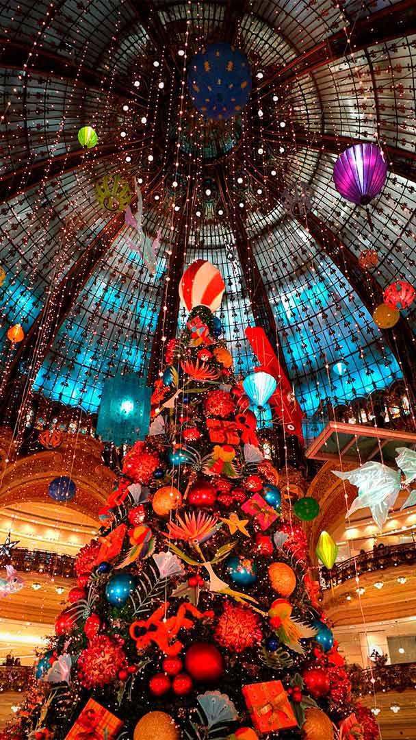 Season of light in the City of Light Christmas tree at the Galeries Lafayette in Paris, France (© Geoffroy Van der Hasselt/AFP via Getty Images)