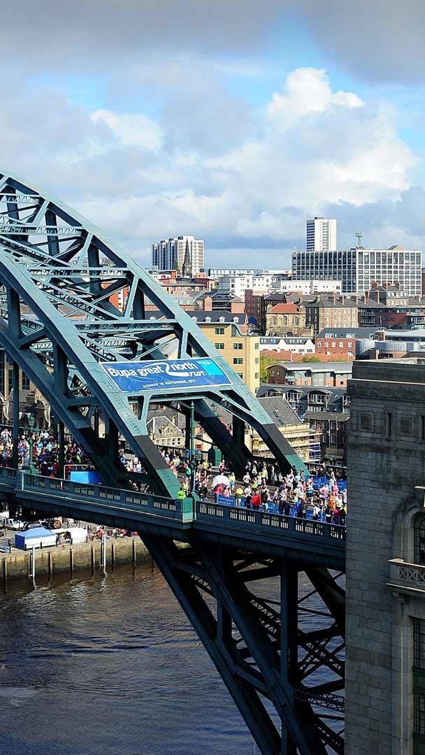 In the running Runners cross the Tyne Bridge during the BUPA Great North Run in Newcastle (© Owen Humphreys – PA Images/Getty Images)