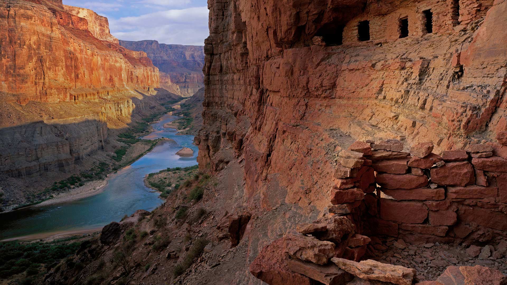 Around 1100 CE—a good 400 years before Spanish conquistadors would first glimpse the Grand Canyon—Ancestral Puebloans tended terrace farms along the banks of the Colorado River. In order to store their crops during the rainy season, when floods might destroy food stores, and to keep animals from eating the harvest, they created the Nankoweap Granaries high up in the canyon walls.