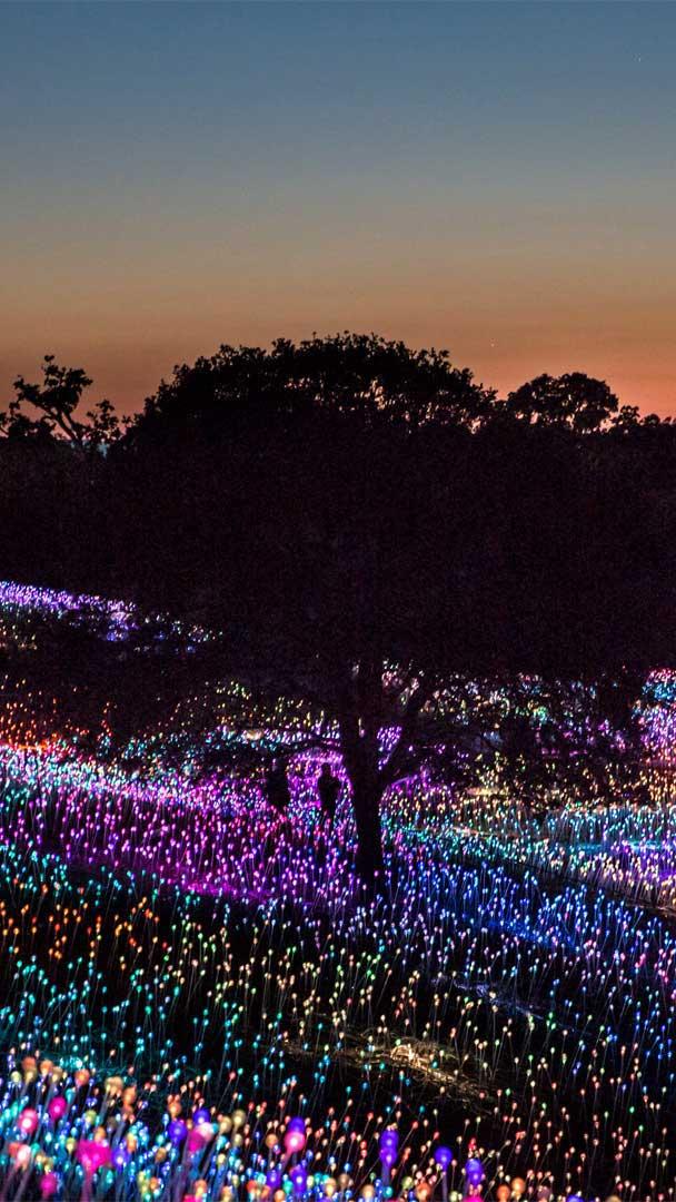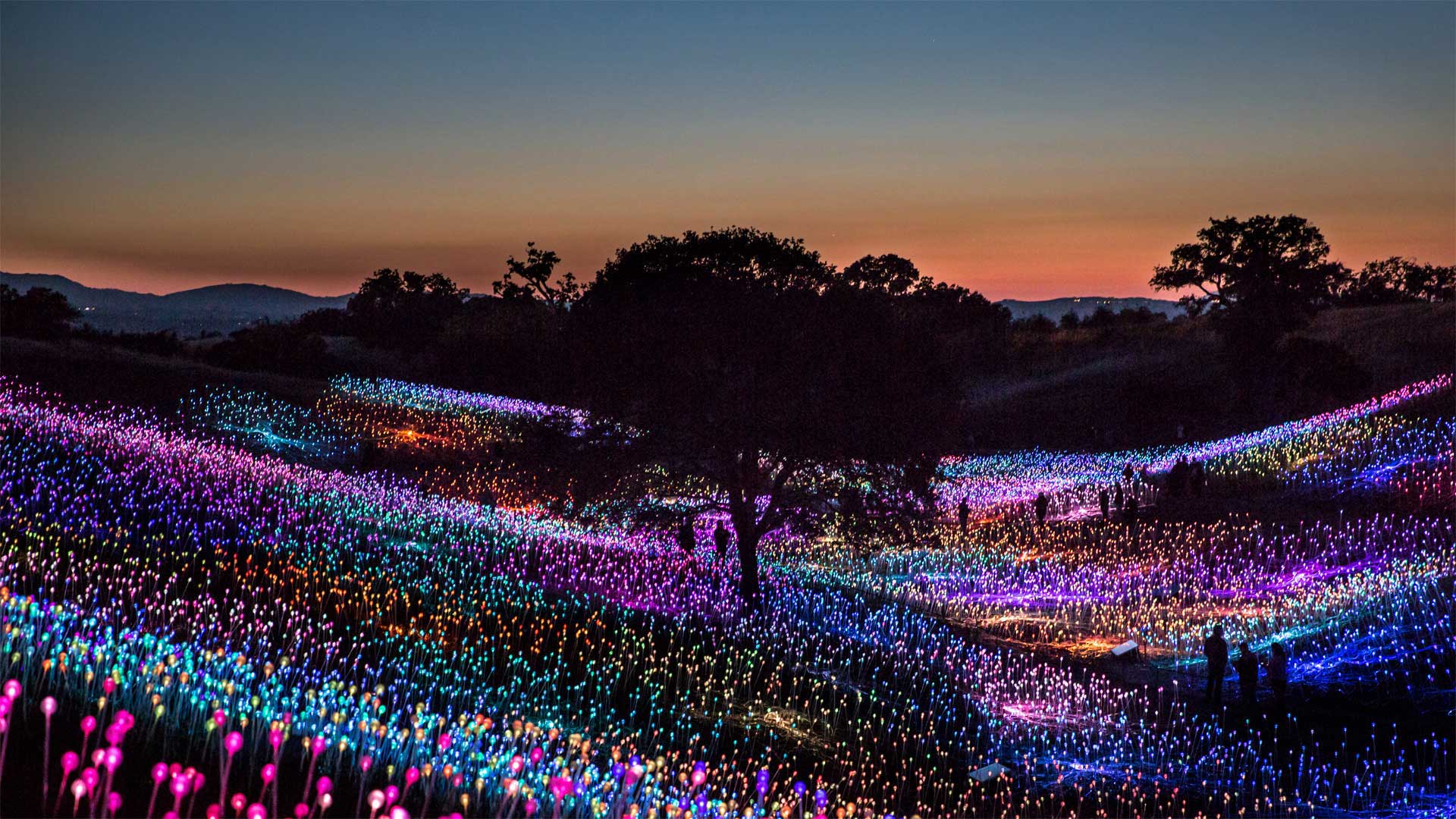 Artist Bruce Munro was camping at Uluru (aka Ayers Rock) in Australia in 1992 when he envisioned the art installation on today"s homepage. Titled "Field of Light," it"s currently on display at a venue called Sensorio in Paso Robles, California, the latest stop in a tour of sites around the world. At Sensorio, a new arts center that bills itself as representing "the intersection of art, technology and nature," visitors will find 58,800 solar-powered spheres, lit by optical fibers, that change color. When the sun sets, the fibers illuminate, creating a shimmering, interactive landscape in the meadow. The art installation changes a bit at each site, but Munro tells reporters, "The one constant is that it does make people smile."