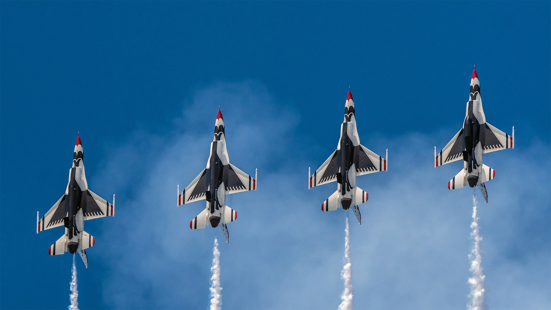 Since most large social gatherings have been postponed or canceled, we"re bringing the Armed Forces Day air show to you, courtesy of the US Air Force"s demonstration squadron, the Thunderbirds. In recent weeks, the Thunderbirds have joined with the Navy"s Blue Angels air squadron to conduct formation flights over several American cities as a salute to essential workers and health care personnel on the front lines of the COVID-19 pandemic. The two services are flying over some cities together and others separately. In a press release, Air Force Lt. Col. John Caldwell, the Thunderbird commander and lead pilot, said, "We are honored to fly over these cities in a display of national unity and support for the men and women keeping our communities safe."