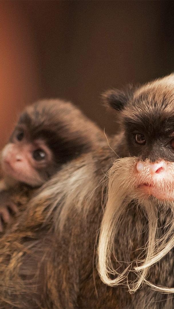 How does a bearded tamarin celebrate Father"s Day? Maybe by giving piggyback rides to pint-sized monkeys. From day one, both male and female bearded emperor tamarin babies (like the one hitching a ride in this photo), start growing their trademark handlebar mustaches and wispy beards. These diminutive residents of the Amazon basin are highly social animals. Females often give birth to twins and stay pretty busy during the day nursing them. After the babies are fed, the males watch over the youngsters by carrying them around on their backs. By the time the young tamarins reach two months old their pops become the primary caregivers, providing food and showing the ropes of the rainforest to their young charges—where to find fruit and nectar in the dry season, how to leap from branch to branch, and the best ways to groom those outrageous mustaches and beards.