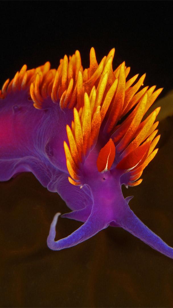 Today we"re meeting one of a motley group of sea slugs called the nudibranchs (rhymes with "thanks"), known for their unique, often complex shapes and neon-bright colors that help discourage predators. The Spanish shawl"s fire-orange mane is made up of tendrils called cerata that mainly act as gills. But that mane also retains venom from the slug"s prey—sea anemones—treating any would-be devourers to a painful sting. Should a ravenous sea star disregard these defenses and get too close for comfort, the Spanish shawl has a Plan B: By flapping its whole 2- to 3-inch body like a gelatinous wing, the nudibranch can flutter into open water for a quick escape.