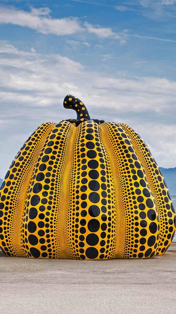 Happy International Design Day! It"s been said the best designs are the ones you never notice, but this giant yellow polka-dotted pumpkin on Japan"s Naoshima Island is kind of hard to miss. The sculpture is the work of Yayoi Kusama, an avant-garde artist active since the 1950s and known for crafting outlandish, repeating patterns in bright colors. Polka dots and pumpkins are her most famous motifs, showing up not only on her sculptures but in her paintings, performance pieces, and films.