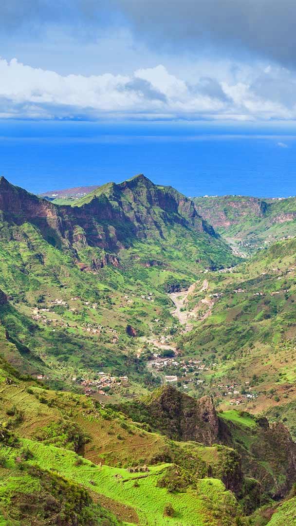 Cabo Verde ("Green Cape") celebrates its independence today. Located about 350 miles off the western coast of Africa, the country consists of 10 volcanic islands. We"re looking at the Serra da Malagueta mountain range in the northern part of the island of Santiago, which is protected as a national park. At nearly 3,500 feet, it"s the highest point of northern Santiago and offers views of nearby Fogo and Maio islands, as well as diverse plants and wildlife.