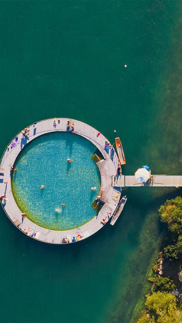 Switzerland may be a landlocked country in the middle of Europe, but with about 6% of Europe"s fresh water flowing through its countless rivers and lakes, there are plenty of outdoor swimming spots to cool down in the Swiss summer heat. Today, we"re dipping our toes in the pristine waters of Lake Zürich in Switzerland"s largest city, which has developed its own urban lido culture. Dotted across Zürich, you"ll find lots of lidos (public open-air swimming pools or bathing beaches) that make the most of the city"s lakes. This time of year, it"s common to see bankers and other workers change from business suits into bathing suits as they enjoy a quick swim during their lunch break.