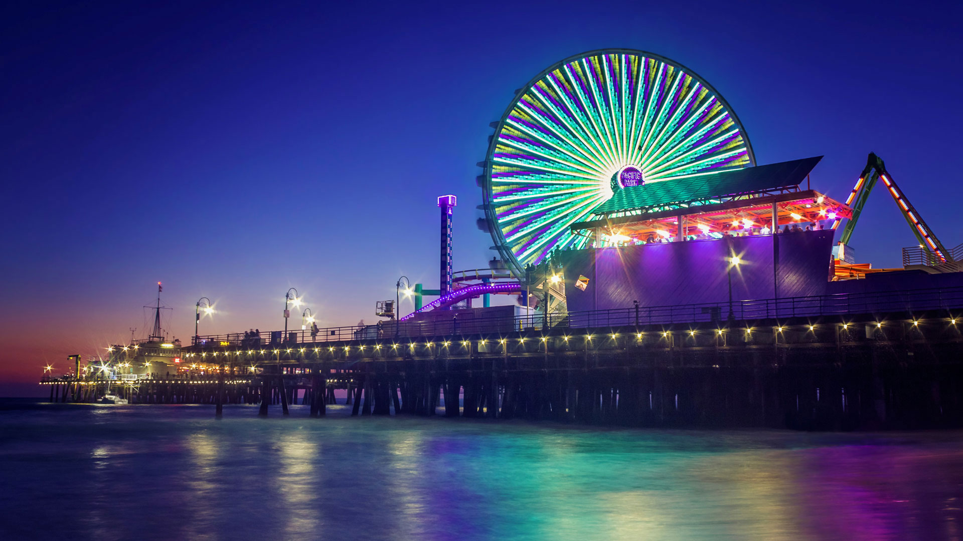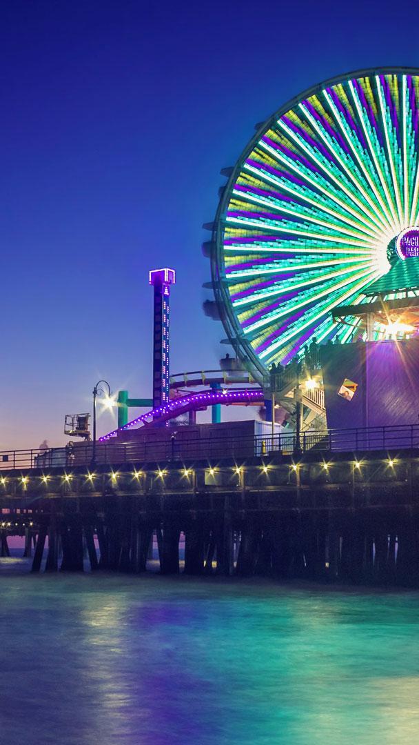 The story of the Ferris wheel, first invented for the 1893 World’s Fair in Chicago, is a prime example of human ingenuity in urban environments, which happened to be the theme of our most recent photo contest. Congrats to contest winner Chris Fabregas, who captured this shot of human ingenuity in action on the Santa Monica Pier in California. Santa Monica debuted its Ferris wheel here in 1996 and then adapted it two years later to make it the world’s first solar-powered Ferris wheel, using clean energy for the ride that propelled about 800 passengers an hour. In 2014 it was replaced with a newer version that sports 174,000 LED lights, providing for glittering nighttime scenes just like this.