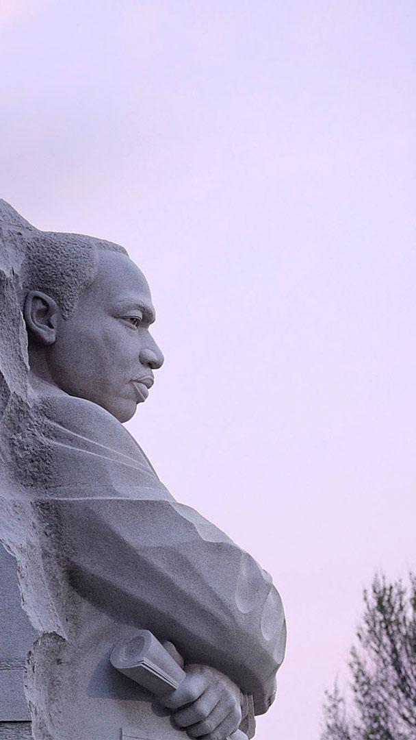This statue is ‘Stone of Hope,’ part of the Martin Luther King, Jr. Memorial that opened in 2011 in West Potomac Park, Washington, DC. The title of the 30-foot granite sculpture comes from a line in King"s ‘I Have A Dream’ speech: ‘Out of the mountain of despair, a stone of hope.’ Across the country today, volunteers will spend their day giving back in honor of Dr. King. His birthday was made a federal holiday in 1983, and in 1994 Congress designated the event as a national day of service, inviting citizens to observe the holiday by improving their communities.